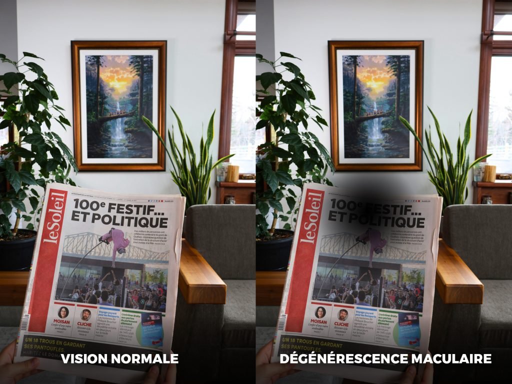Les personnes atteintes de dégénérescence maculaire peuvent avoir des difficultés à voir clairement les détails fins et à percevoir les couleurs avec précision. Cette condition peut affecter la capacité à lire, à reconnaître les visages et à effectuer des tâches nécessitant une vision détaillée.