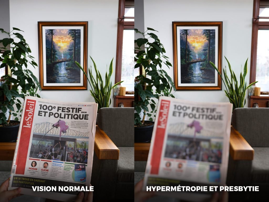 La presbytie est un trouble de la vision qui survient généralement avec l’âge, généralement à partir de la quarantaine. Contrairement à la myopie où la difficulté se situe principalement dans la vision de loin, la presbytie affecte principalement la capacité à voir clairement les objets proches tout comme l’hypermétropie. Cela se produit parce que le cristallin, grande lentille naturelle de l’oeil, perd progressivement de sa flexibilité avec le temps, ce qui rend difficile pour l’oeil de focaliser sur les objets à une distance rapprochée.